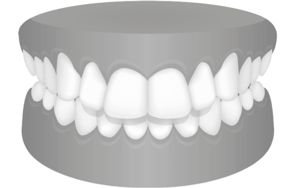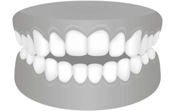 An overbite is when your upper teeth overlap your lower front teeth. Up to 1mm can be rectified, up to 3mm increases complexity. Cases with 3mm+ may require bite opening appliances first.